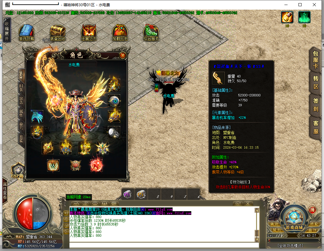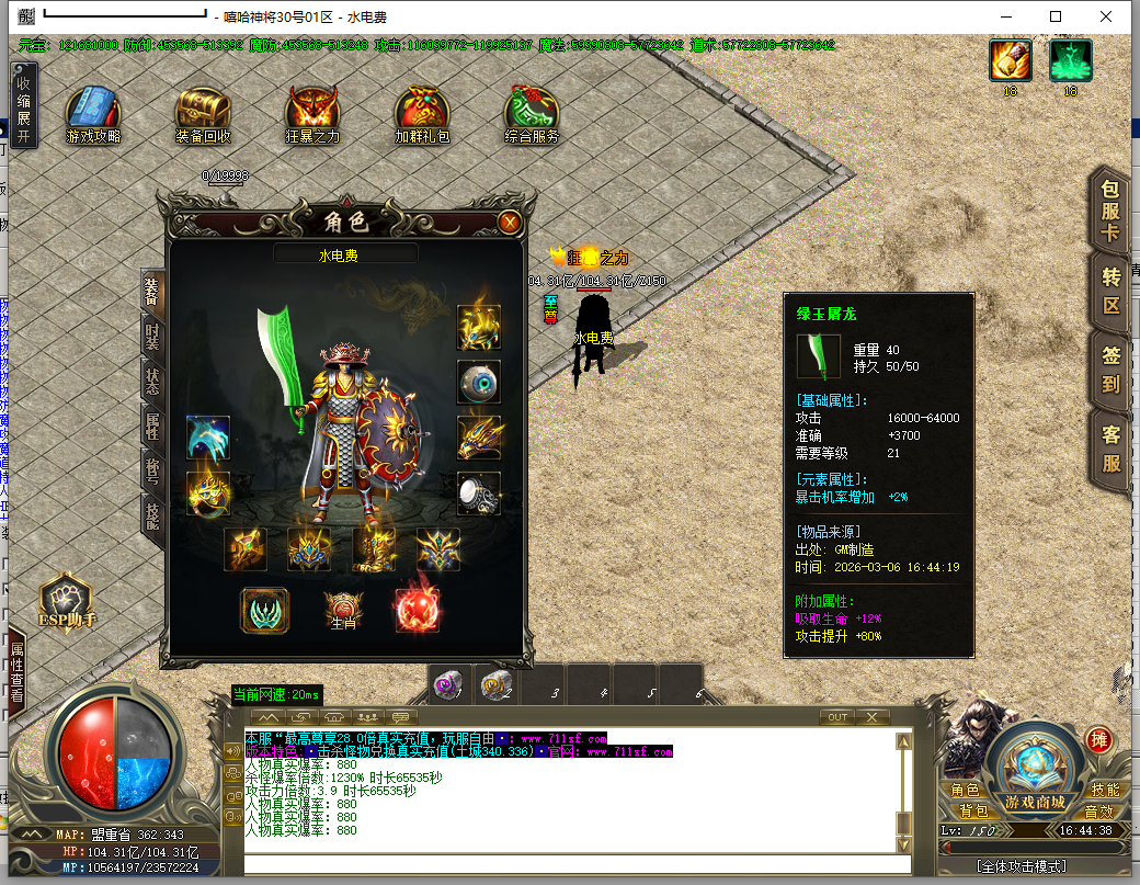 - 【版本说明】: 上线就送MAX刀速+双倍爆率提升.装备嗷嗷全爆.人人土豪装逼又激情!